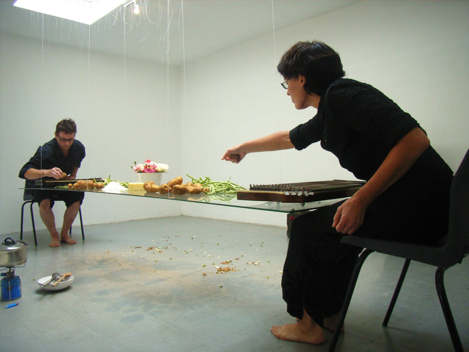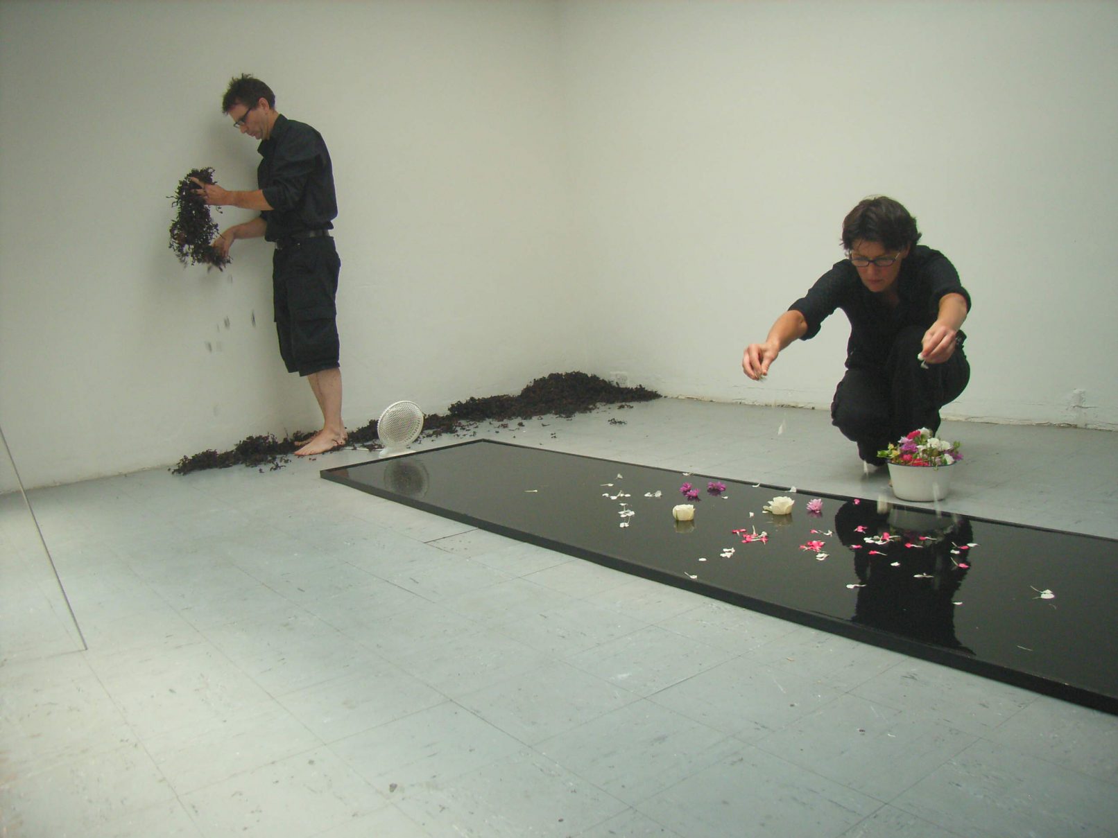 „T.O.P.2.3.4.“ Red Gallery Hull, England, 2006 Performance mit H. W. Specht Blumen, Seegras, Ventilatoren